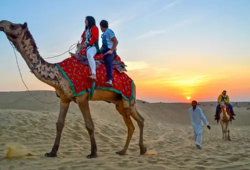 This is the most popular experience among travelers visiting Jaisalmer. It combines camel or jeep rides with a full evening of desert hospitality: